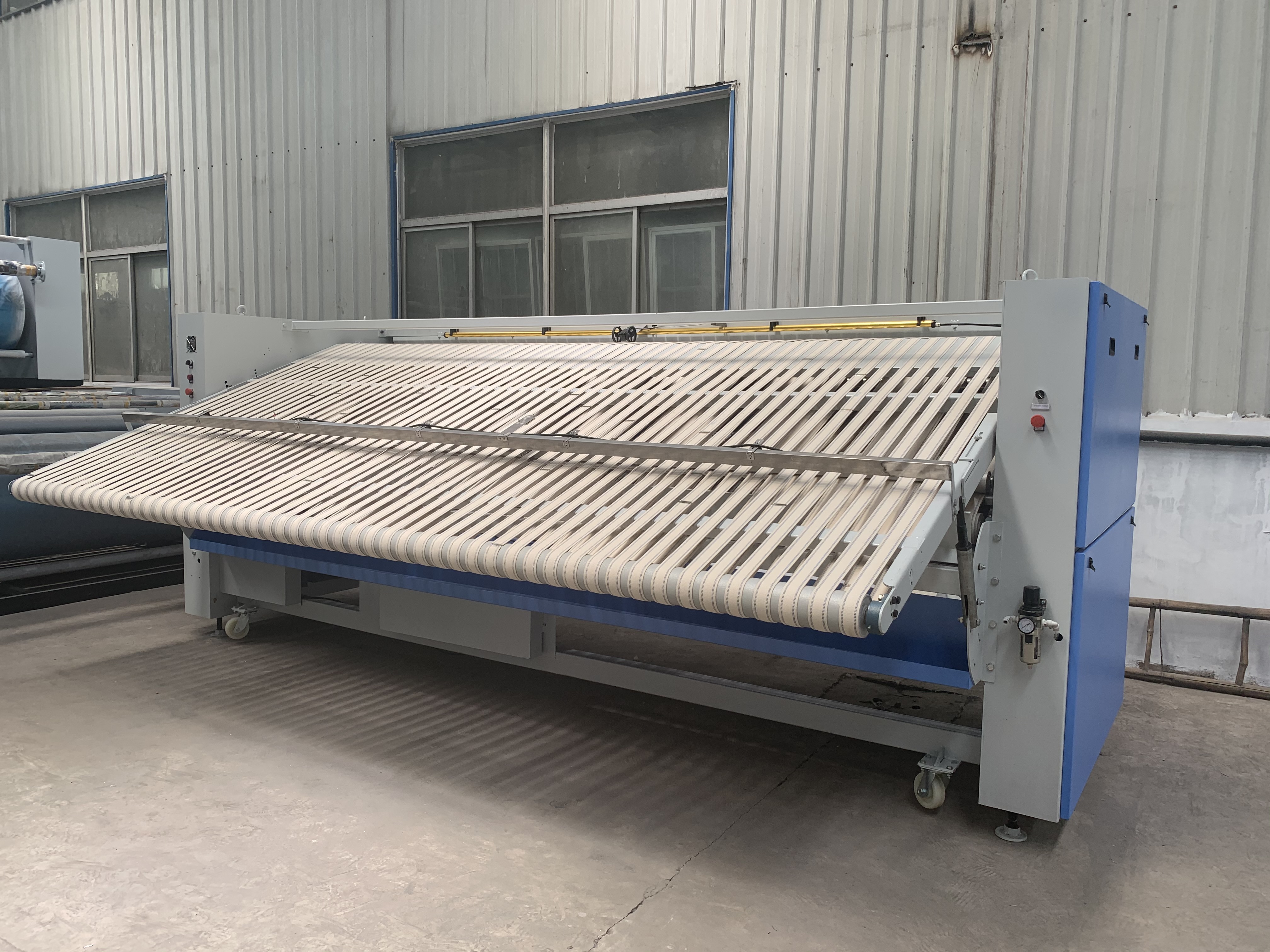 折疊機一款洗滌設備輔助機械產品,控制布料傳送系統的速度和定位,測定布料長度并計算折疊長度,通過氣流的噴射和折刀來完成水平折疊和交叉折疊。